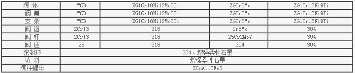 國(guó)標(biāo)重型截止閥零件材料與工況: