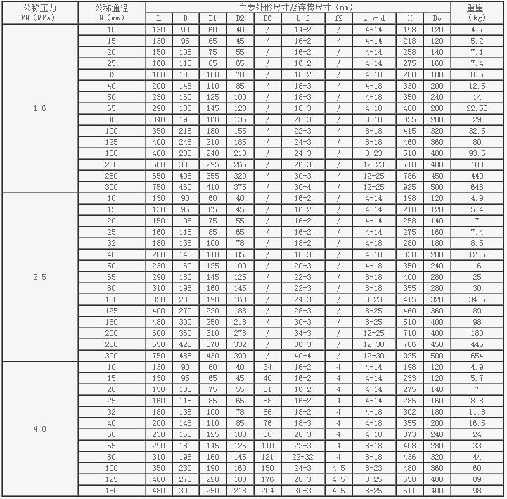 國(guó)標(biāo)重型截止閥主要尺寸及重量: