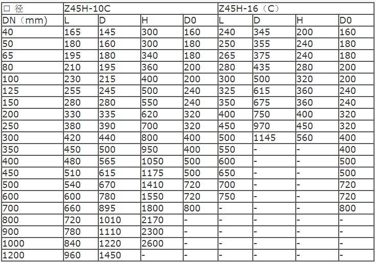 四、Z45H-10C與 Z45H-16(C)的尺寸數(shù)據(jù):