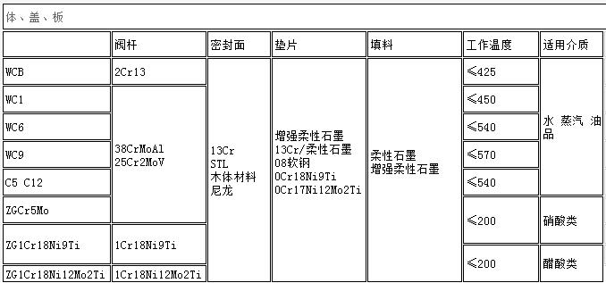 五、Z41H蘇式法蘭閘閥主要零部件材料: