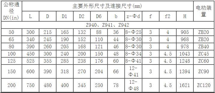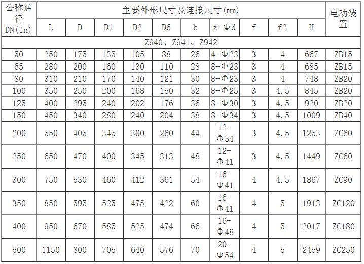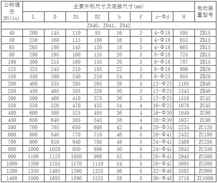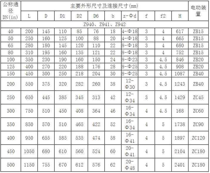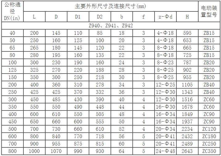 Z941H電動(dòng)法蘭閘閥主要連接及外形尺寸(PN40)