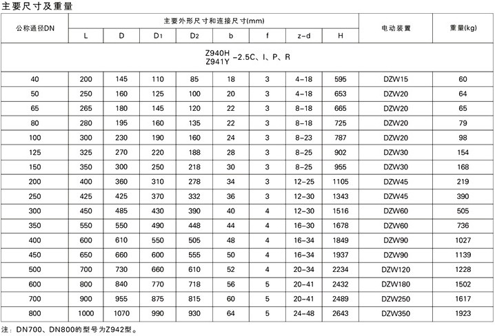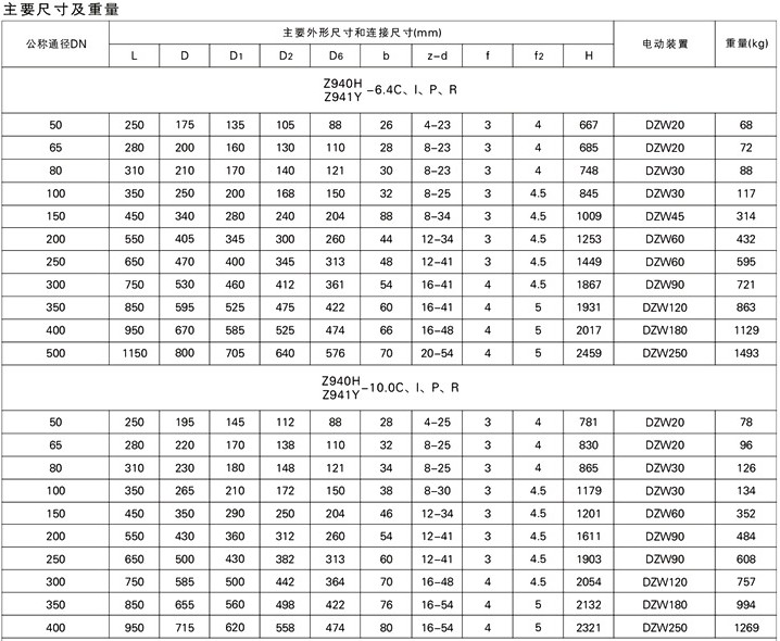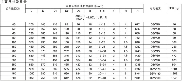 Z941Y電動(dòng)高壓法蘭閘閥的主要尺寸及重量: