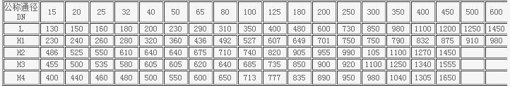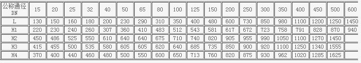 GDQ47型PN1.6~2.5MPa主要外形尺寸