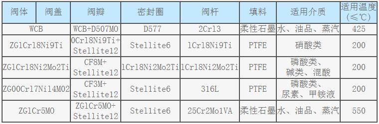6、閥體材料品種齊全,填料、墊片可根據(jù)實際工況或用戶要求合理選配,能適用于各種壓力、溫度及介質(zhì)工況。