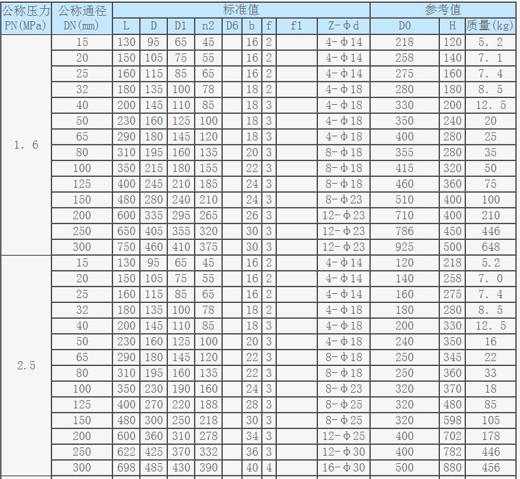 法蘭截止閥主要外形尺寸、連接尺寸及質(zhì)量