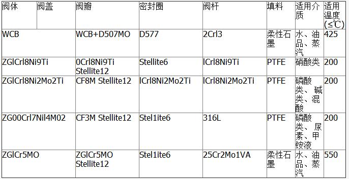(5)、閥體材料品種齊全,填料、墊片可根據(jù)實(shí)際工況或用戶(hù)要求合理選配,能適用于各種壓力、溫度及介質(zhì)工況。