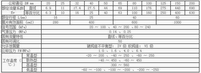 精小型氣動(dòng)單座調(diào)節(jié)閥主要技術(shù)參數(shù)