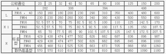 精小型氣動(dòng)單座調(diào)節(jié)閥外形尺寸表