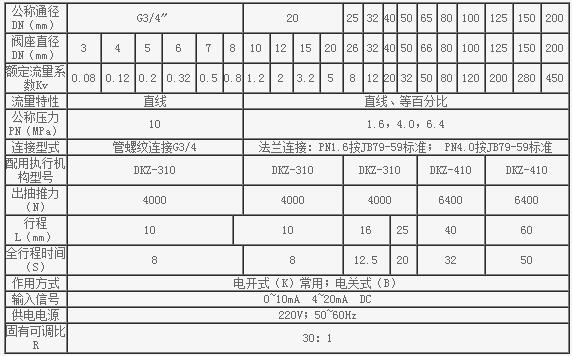 電動單座調(diào)節(jié)閥主要技術(shù)參數(shù)