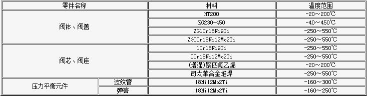 自力式溫度調(diào)節(jié)閥主要零件及推薦使用溫度范圍