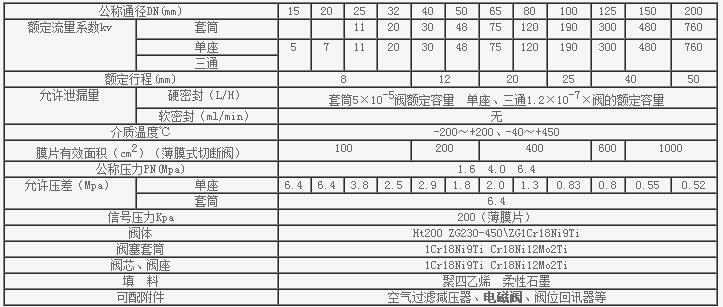 氣動薄膜調(diào)節(jié)切斷閥主要性能技術參數(shù)