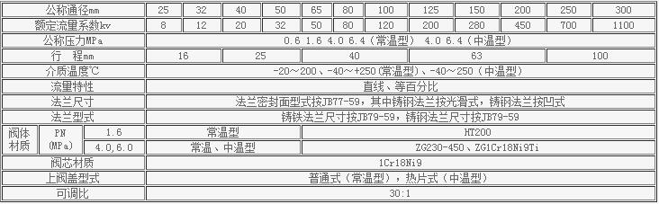 氣動薄膜單座調(diào)節(jié)閥規(guī)格與技術(shù)參數(shù)