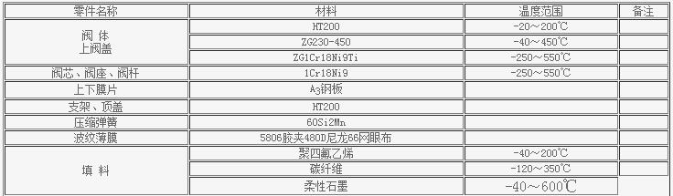 氣動薄膜單座調(diào)節(jié)閥主要零件材料及推薦使用溫度范圍