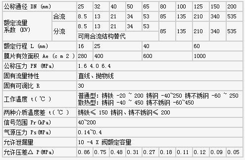 氣動薄膜三通調(diào)節(jié)閥技術(shù)參數(shù)