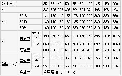 注:1、本表高溫型的高度與重量依PN16為依據(jù)。