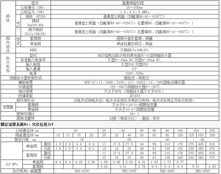 電動精小型調(diào)節(jié)閥主要技術(shù)參數(shù)