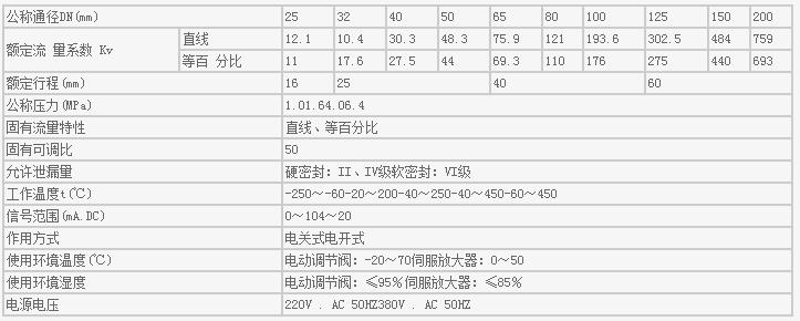 電動(dòng)雙座調(diào)節(jié)閥技術(shù)參數(shù)