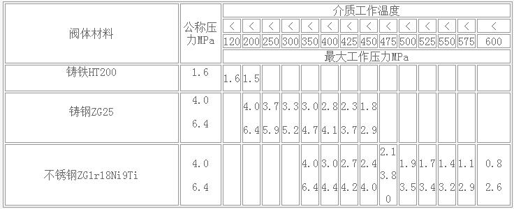 六、電動(dòng)雙座調(diào)節(jié)閥主要零件材料及推薦使用溫度范圍: