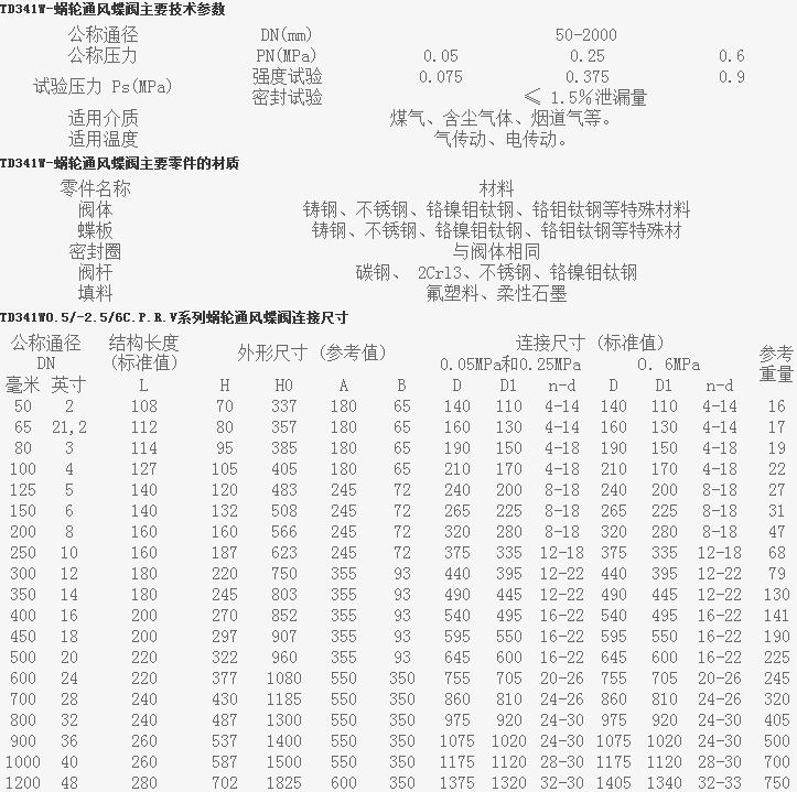 TD341W-蝸輪通風(fēng)蝶閥采用標(biāo)準(zhǔn)