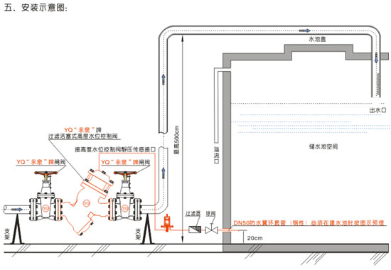 2、此閥必須安裝在水池外,便于調(diào)節(jié)和維護(hù),避免進(jìn)入水池操作的危險(xiǎn)性。